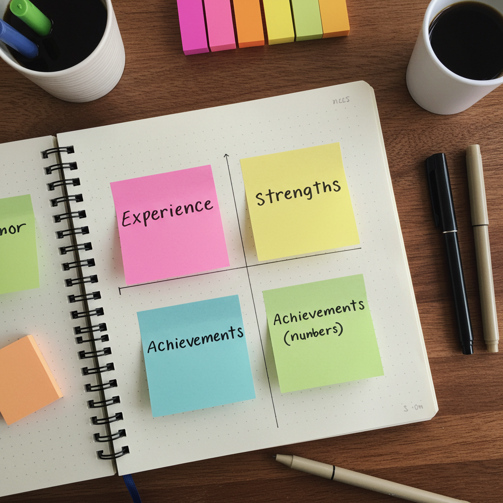 具体的には、担当業務・達成成果・工夫した点を箇条書きで洗い出しましょう。