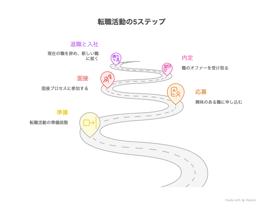 転職活動は、5つのステップを理解して取り組むと効率が大きく変わります。