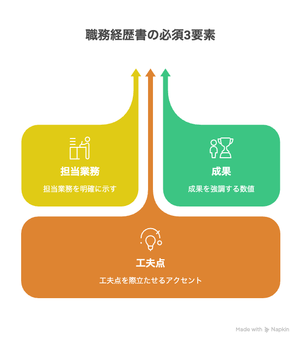職務経歴書は、これまでの実績やスキルを具体的に示す書類です。